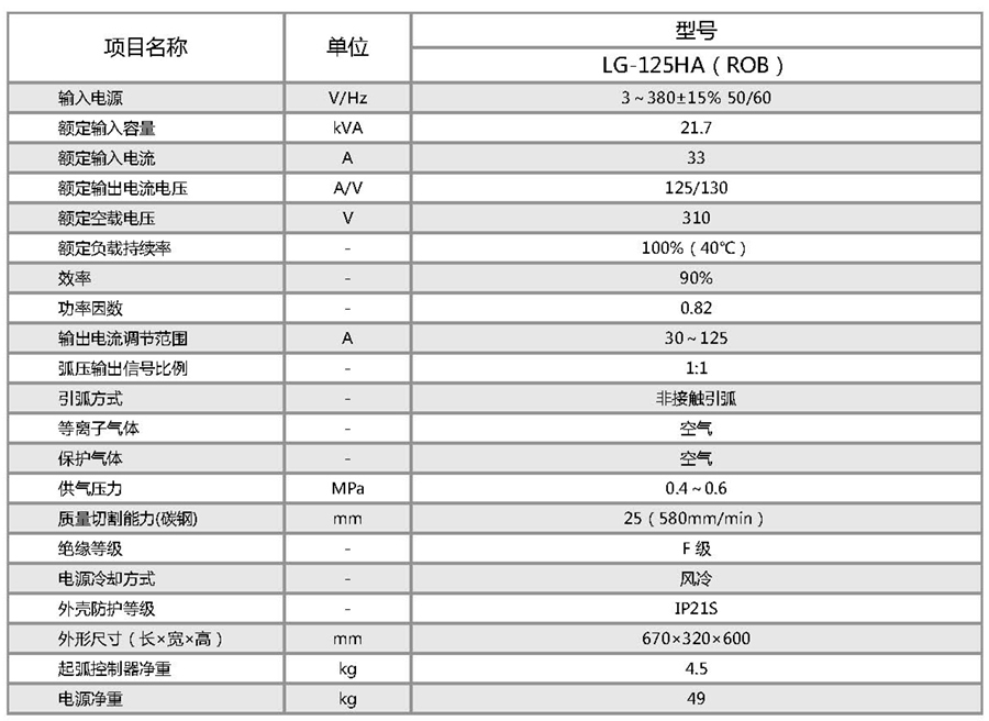 LG-125HA (ROB) 機(jī)器人專用逆變式等離子切割機(jī)
