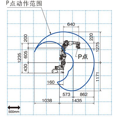 注1:位置重復(fù)精度遵照JIS B 8432 是標(biāo)準(zhǔn)的工具中心點(diǎn)(TCP)測(cè)量值注2:第6軸的動(dòng)作范圍可能因第5軸的姿勢(shì)而受到限制注3:上部手臂可搬重量隨著可搬重量可以變化注4:需要側(cè)掛、吊裝規(guī)格時(shí)請(qǐng)咨詢我司銷售人員