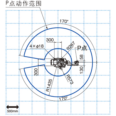 1:位置重復(fù)精度遵照JIS B 8432 是標(biāo)準(zhǔn)的工具中心點(diǎn)(TCP)測(cè)量值注2:第6軸的動(dòng)作范圍可能因第5軸的姿勢(shì)而受到限制注3:上部手臂可搬重量隨著可搬重量可以變化注4:需要側(cè)掛、吊裝規(guī)格時(shí)請(qǐng)咨詢我司銷售人員
