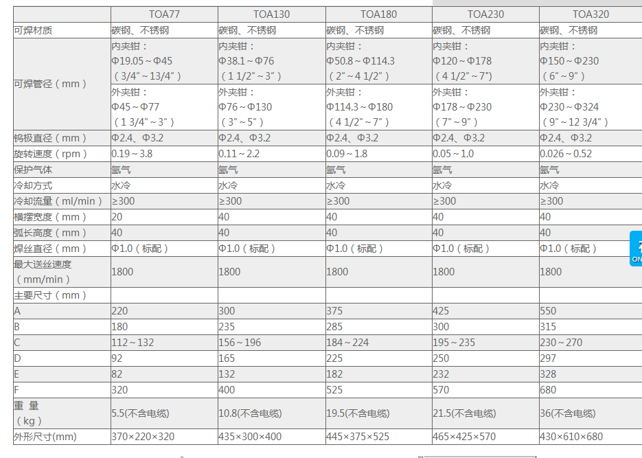 主要部分用鋁制,結(jié)構(gòu)輕巧,卡鉗式裝夾方式可適用于不同管徑采用無間隙齒輪傳動設(shè)計、旋轉(zhuǎn)平穩(wěn)、轉(zhuǎn)動慣量小,無卡阻現(xiàn)象》機械模導(dǎo)向機構(gòu),使鎢極及工件表面的距離保持恒定適用海壁碳鋼、不銹鋼材質(zhì)的管道焊接焊槍循環(huán)水冷,連續(xù)工作時可長》可自焠、加絲焊接