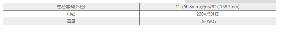 機(jī)身重量約42(19.05KG),可切割外徑范圍為1(50.8mm)65/8(168.3mm)。替換管子時不用更換夾具座和鎖緊裝置,只需更換相應(yīng)尺寸的夾具