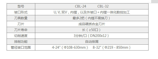 >可實現U型、雙V、V型以及內的先進技術復合坡口一體化數控自動加工方式,加工過程不換》剛性切削